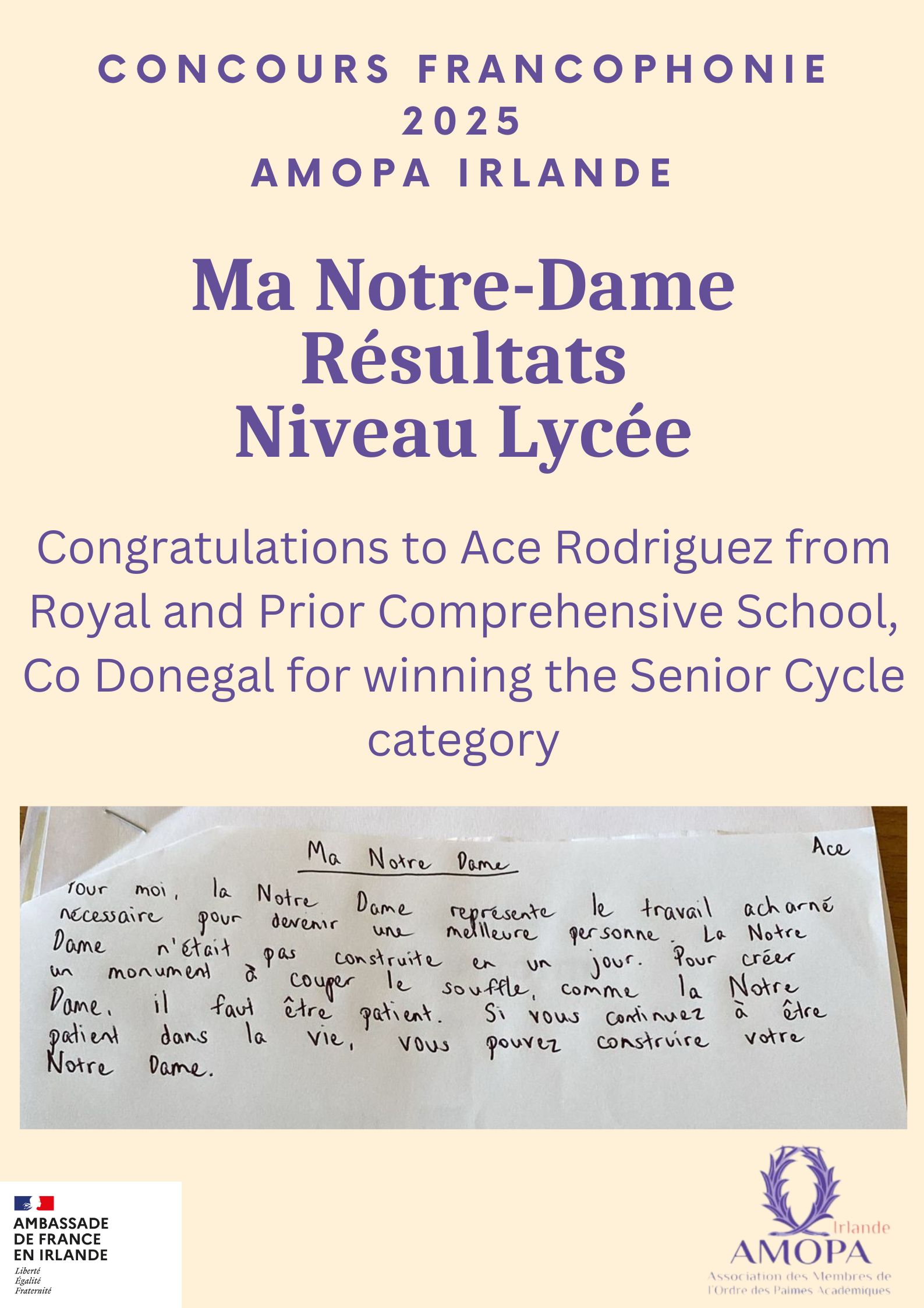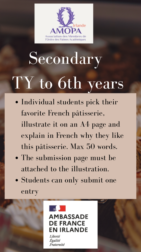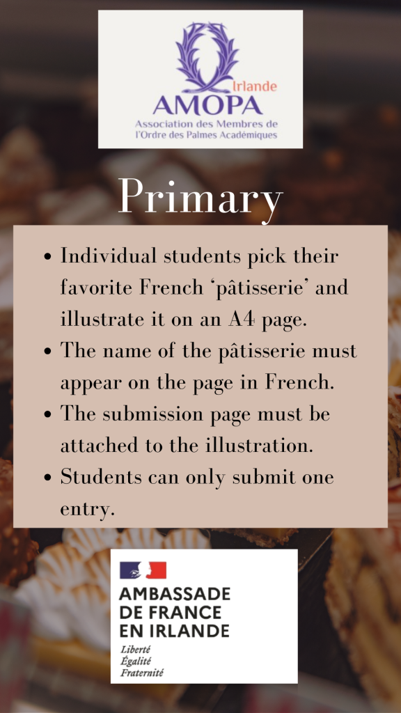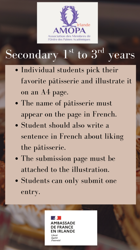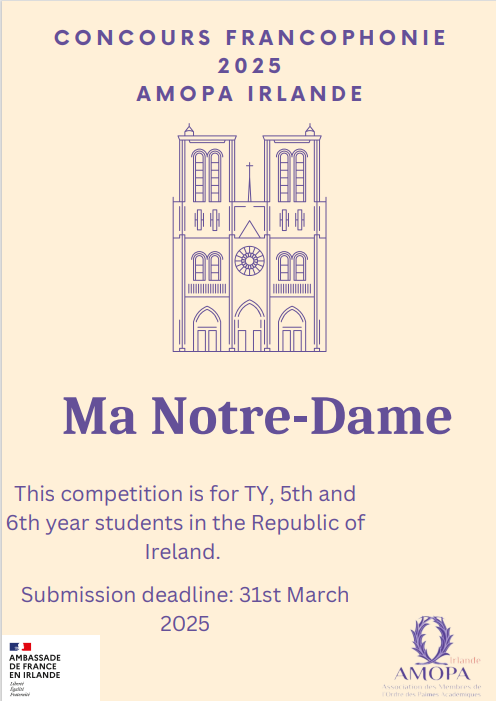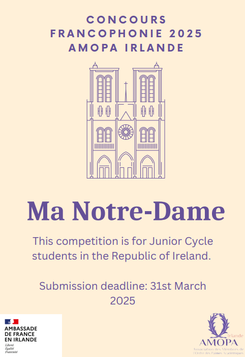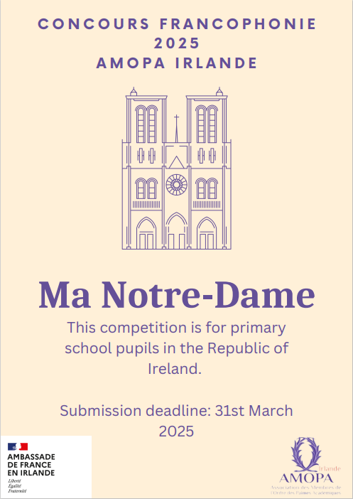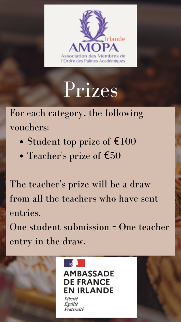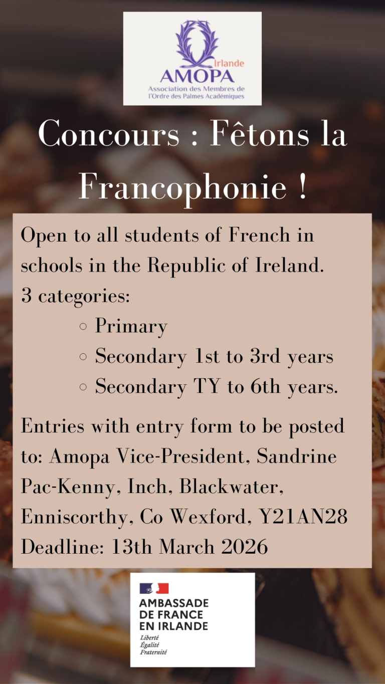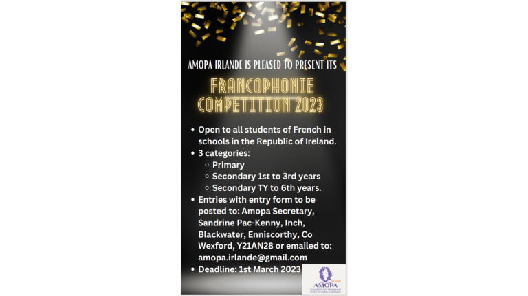 Pour participer au concours, nous vous demanderons de bien vouloir remplir le formulaire ci-dessous et nous l’envoyer par courriel (amopa.irlande@gmail.com).
