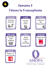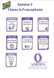 Voici le choix de vos chansons pour chacune des 5 semaines du mois de la francophonie :